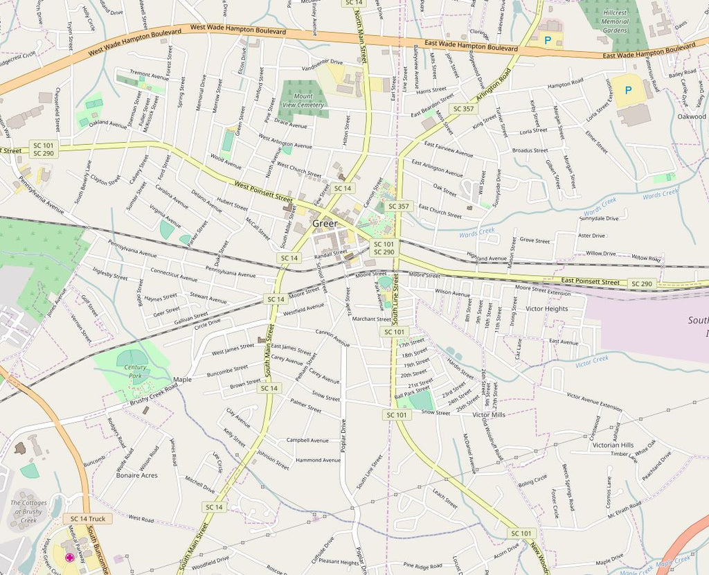 Detailed Editable City Map of Greer in vector file format you can edit in your own design software. Your topographic plan at street level contains editable layers for each cartographic category like roads - buildings - rivers - points of interests et cetera. This Illustrator City Vector Map includes not only the city centre - but the suburbs as well. Only accept the most accurate map of your favourite city. Therefore, we take one working day to incorporate the latest changes in a city map. This is what makes Map Illustrator stand out from other suppliers.